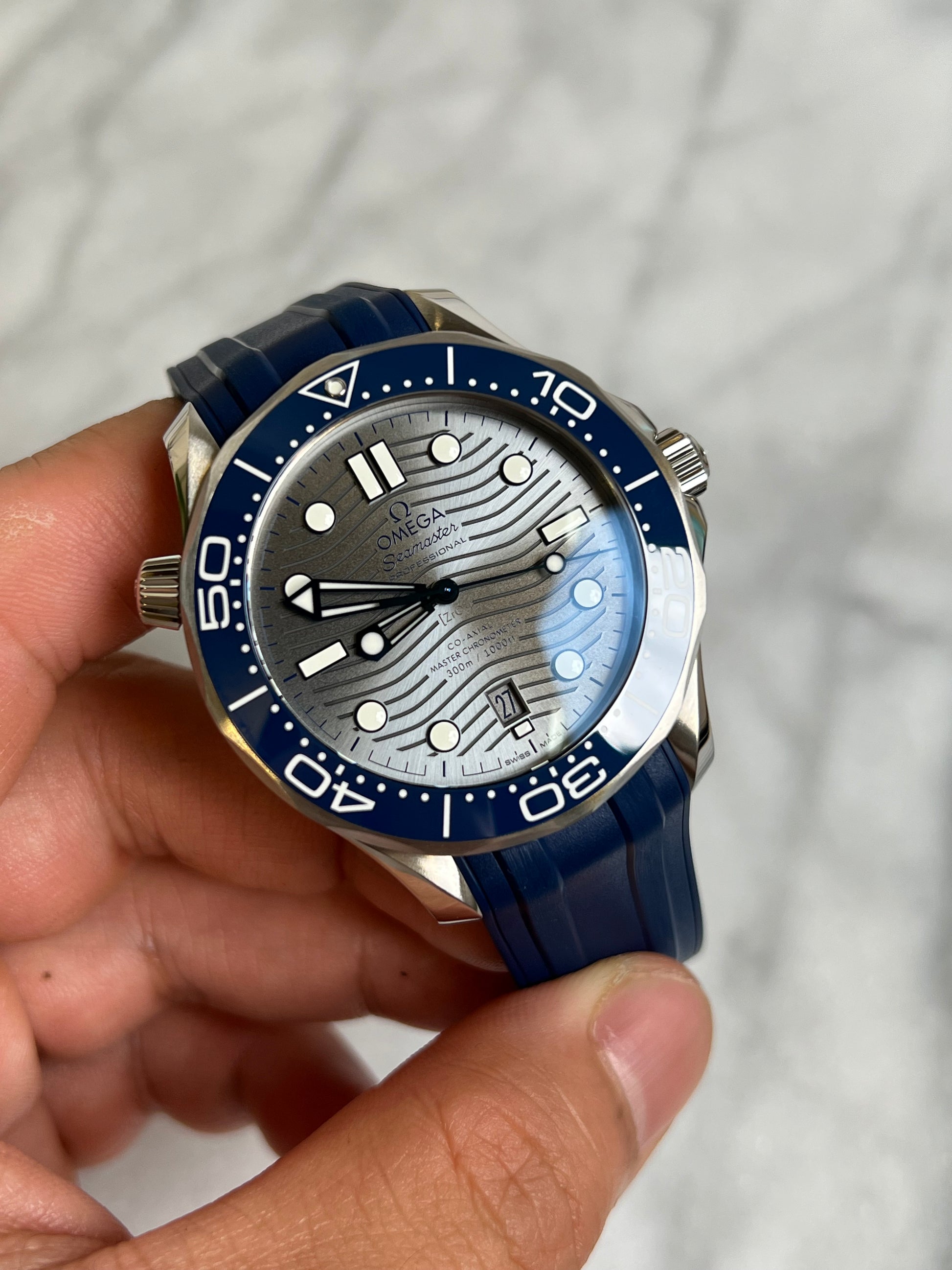 2025 21032422006001 Seamaster Diver 300M Grey Dial Blue Ceramic Bezel Rubber Strap New Complete